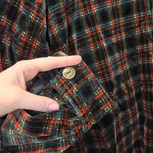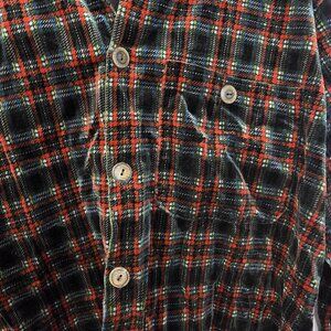 Stylish plaid design. Button-down front. Comfortable fit. Perfect for casual wear.