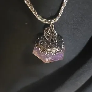 This elegant necklace features a stunning purple pendant, perfect for adding a touch of sophistication to any outfit. The silver chain complements the vibrant purple beautifully.
