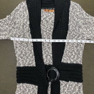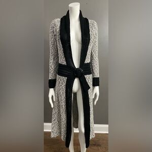 Belldini Large Black Combo Open-Front Belted Duster Cardigan Boucle Knit Size M