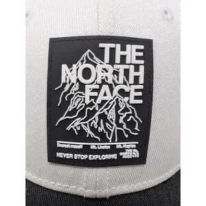 Conquer your next adventure with this iconic The North Face Mudder Trucker Hat. Boldly emblazoned with the "Never Stop Exploring" motto and a striking embroidered mountain graphic, this hat speaks to the spirit of the outdoors. The classic white front panel creates a clean canvas for the detailed patch, while the black brim and mesh back offer a timeless, versatile look. Designed for comfort and style, it's the perfect companion for hikes, casual outings, or simply embracing an active lifestyle.
