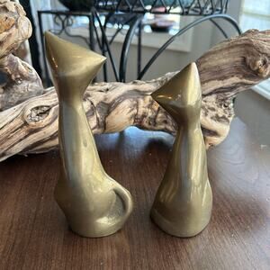 Vintage 1950s Mid Century Large Brass Siamese Cat Statue Figurine MCM