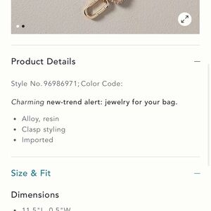 Anthropologie New With Tags Crystal Chain Bag Charm