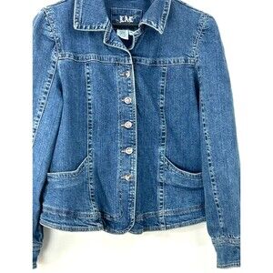 Live A Little LAL Women Blue Denim Jean Jacket Fitted Classic Sz PXL 1153E2