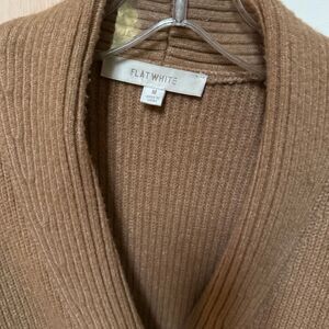 Anthropologie Flat White Sweater Ribbed Knit Mini Cardigan Sweater Camel Dress M
