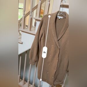 Anthropologie Flat White Sweater Ribbed Knit Mini Cardigan Sweater Camel Dress with Double-Breasted Detail M