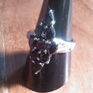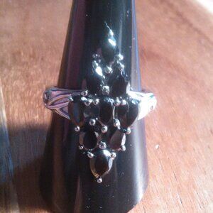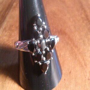 Elongated Design Thai Black Spinel Stainless Steel Cluster Ring (Size 9)