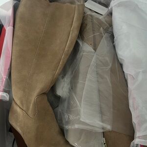Brand New in Box, and never worn. Chic over the knee boots by Vince Camuto Oyennda boot. Comes with box and stuffing. Sleek tan suede finish. Perfect for stylish outings.