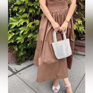 EN SAISON Brown Parker Mixed Media Off Shoulder Midi Dress Size Medium
