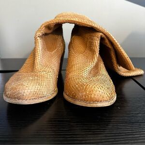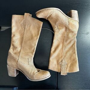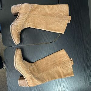 Anthropologie Matisse Womens Boots Promise Camel Brown Leather Pull On Textured Mid-Calf. Elevate your western-inspired look with these Matisse Women's Boots. The almond toe and mid-calf shaft style add a touch of sophistication, while the pull-on closure and block heel provide comfort. The textured camel brown leather upper material exudes a classic vibe that would perfectly match any outfit. Ideal for any occasion, these boots are a must-have for any fashion-forward woman. Experience the perfect blend of style and comfort with these Matisse Women's Boots. Size 9. EUC