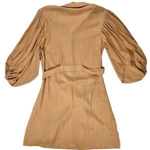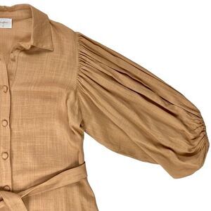 - Description: Girl and the Sun Mini Dress M Tan Linen Button Front Beach Summer Coastal