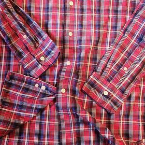 CHAPS Easy Care Long Sleeve Button Down Casual Shirt, Medium, Red & Blue Plaid