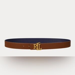 Ralph Lauren Logo Reversible Navy-Tan Pebbled Leather Belt