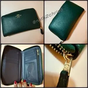 COAH MEDIUM ID ZIP WALLET- Dark Green. Pre owned.