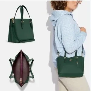 •Coach Mollie 25 Tote Bag in Everglades Green and Purple interior.