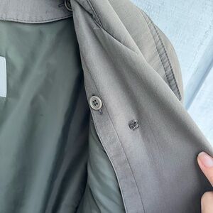 Condition: Excellent vintage – shell has been gently machine-washed once and looks incredible. Original button-in quilted liner is untouched and only ever spot-cleaned – still perfect and fluffy. Only the absolute faintest ghost of an old pen mark on the back/top of collar– virtually invisible when worn and common on 30+ year-old trenches.