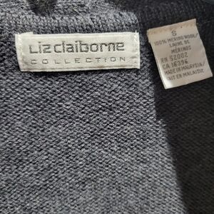 Vtg. Liz Claiborne 100% Merino Wool Cardigan long tunic Sweater Argyle Diamond Gray Size S SMALL