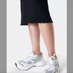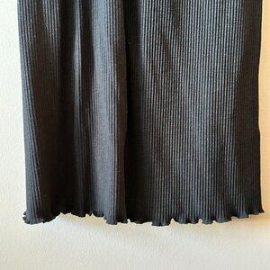 Women's 8 Sweaty Betty Black Ribbed Midi Dress Slim Fit Pleated Lettuce Hem