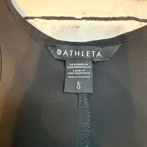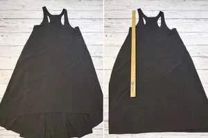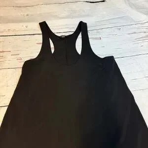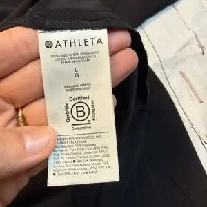 Athleta Presidio Dress in black, size Large, featuring a stylish high-low hem and a comfortable racerback design.