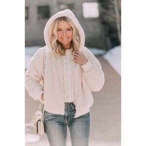 Keywords: Sherpa, Fleece, Teddy Bear, Hoodie, Bomber, Cream, Plush, Cozy, Winter, Loungewear, Casual, Streetwear, Soft, Y2K, Retro, Minimalist, Clean Girl, 90's style, Snow Bunny, Urban, Feminine