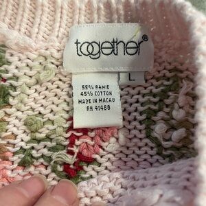 TOGETHER pink hand-knit cotton blend sweater with rose intarsia - Large