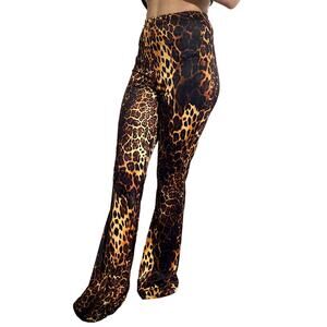 New Small Slinky Leopard Print Flare Pants Brown Fitted Flattering Animal Bell