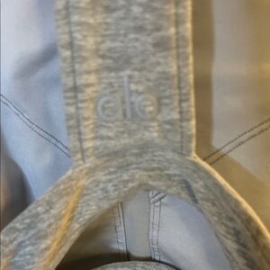 Stylish ALO Yoga sports bra in heather gray. Ideal for workouts or casual wear. Soft and comfortable fabric. No pads