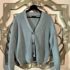 Quince 100% Organic Cotton Fisherman Boxy Cropped Cardigan in Sky Blue