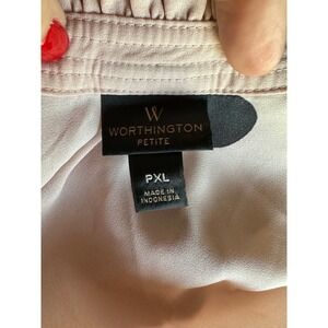 Worthington Pink Black dots popover blouse size XL petite 3/4 sleeve spring