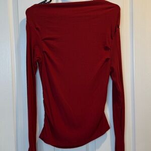 Cider Red Cowl Neck Off Shoulder Ribbed Top Size M