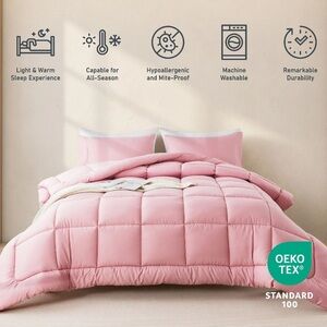 KINMEROOM Queen Size 3-Piece All-Season Down Alternative Comforter Set Pink New