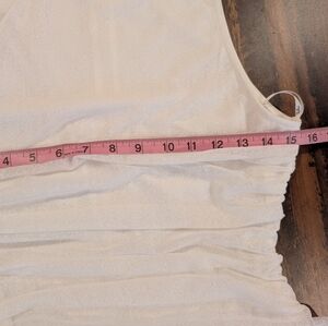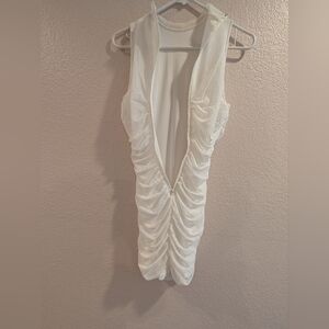 Sleek white mini dress with ruched detailing. Sleeveless design for a modern look. Perfect for any event.Bust is approximately 31" length 33" . Long zipper on the back, it's fully lined.Very good used condition.No defects,none smoking house.