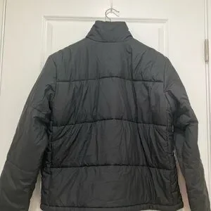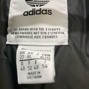 Stylish black puffer with Adidas logo. Perfect for chilly days.