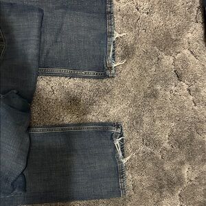 Authentic Wrangler denim boot cut jeans. Size 13 x 34. Small spot on front of leg as show. In picture. Some wear at back bottom of legs. Excellent with boots.