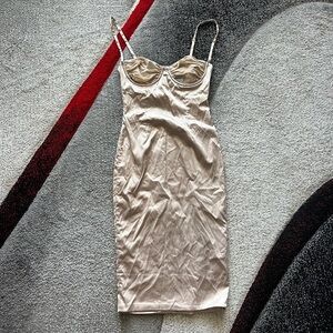 Oh Polly Gold Satin Cupped Slip MIDI Dress