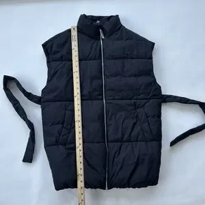 MANGO Padded Waistcoat Puffer Vest With Belt Black XS Waist Tie Oversize
