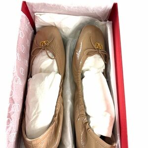 NEW WITH BOX & DUST BAGS Valentino Garavani Beige Vlogo Ballerina Patent Leather Ballet Flats