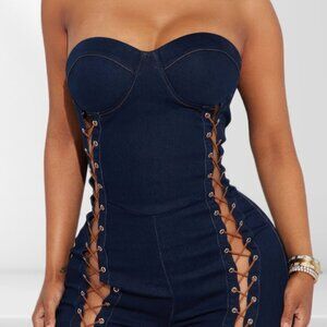 Ladies Sexy Lace Up Denim Jumpsuit Size Medium