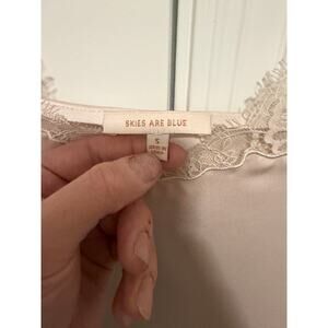 Skies Are Blue Women's Small Cream Lace Trim Sleeveless V-Neck Cami Top