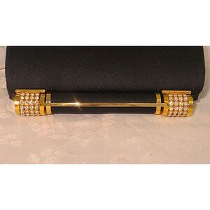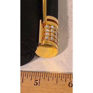 Condition: Excellent Vintage Condition with 1 Minor light surface scuff/mark on the satin exterior (visible in close-up photos) I WASN'T SURE HOW TO CLEAN IT SO I JUST LEFT IT, some wear to the gold-tone hardware, and minor dust/soiling inside. No major damage, crystals intact and sparkling. Please examine all photos carefully.