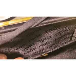 up for sale is a VINTAGE RODO Italy Black Satin Evening Clutch Rhinestone Crystal Clasp Minaudiere..........Great Condition looks Almost New except a Minor light surface scuff/mark on the satin exterior (visible in close-up photos) I WASN'T SURE HOW TO CLEAN IT SO I JUST LEFT IT