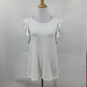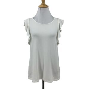 Lilly Pulitzer Lanette Top Womens S White Pima Cotton Blend Flutter Sleeve Shirt