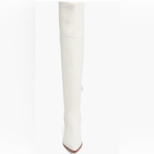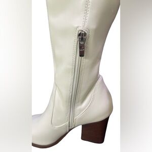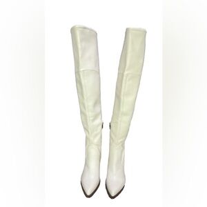 MARC FISHER Meyana White Faux Leather Over The Knee Block Heel Boots Size 8