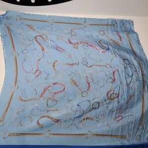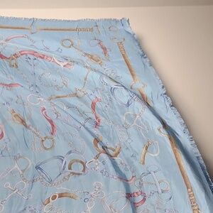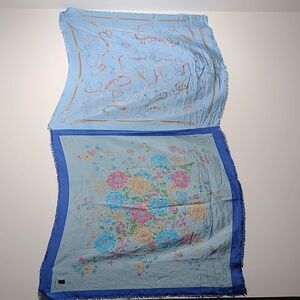 FRANCO FERRARI 100% Silk Blue Floral and Chain Pattern Scarf Extra Large
