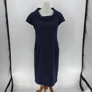 Lafayette 148 NY Blue Tweed Cowl Neck Midi Dress With Pockets Size 8