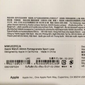 Brand new, sealed, authentic Pomegranate Apple Watch Sport Loop Band 44mm, now discontinued. Made from a soft, breathable, double-layer woven nylon blend of nylon, polyester, and spandex, it offers all-day comfort. The hook-and-loop fastener (Velcro) makes it quick and easy to adjust for the perfect fit. Comes in the manufacturer’s original packaging.