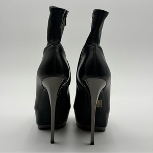 Authentic Gucci black ankle booties crafted in smooth lambskin leather. A sleek peep-toe silhouette with a dramatic stiletto heel and platform sole, designed to elongate the leg while remaining surprisingly comfortable. A timeless, sexy Gucci classic that works day to night. • Brand: Gucci • Color: Black • Material: Lambskin leather • Style: Peep toe platform ankle booties • Closure: Side zip • Made in Italy Size: EU 37 Measurements (approx.): • Heel height: 5.25 in / 13.5 cm • Platform height: 1.25 in / 3 cm • Shaft height (from sole): 6 in / 15 cm Condition: Worn once. Excellent, near-new condition. Minimal signs of wear on soles only. Leather is clean and well-kept.