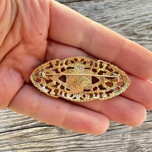 Vintage Jewelry 1928 gold tone filigree purple stone brooch pin Victorian brooch