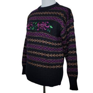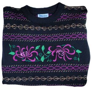 Meister Vintage Wool Blend Sweater Size Small Embroidered Floral Metallic