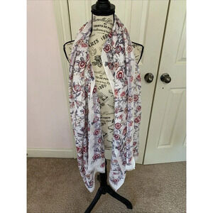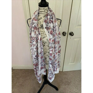 Ann Taylor LOFT Floral Print Raw Hem Scarf Shawl Beige Red Purple 26X74 NWT
