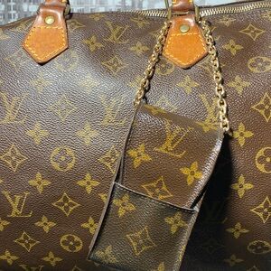 Authentic Louis Vuitton Monogram Pouch in preowned condition with some signs of wear including peeling and fading. Accessories and charm not included.Great for carrying hand sanitizer, cash or credit cards etc. 3rd pic reference.